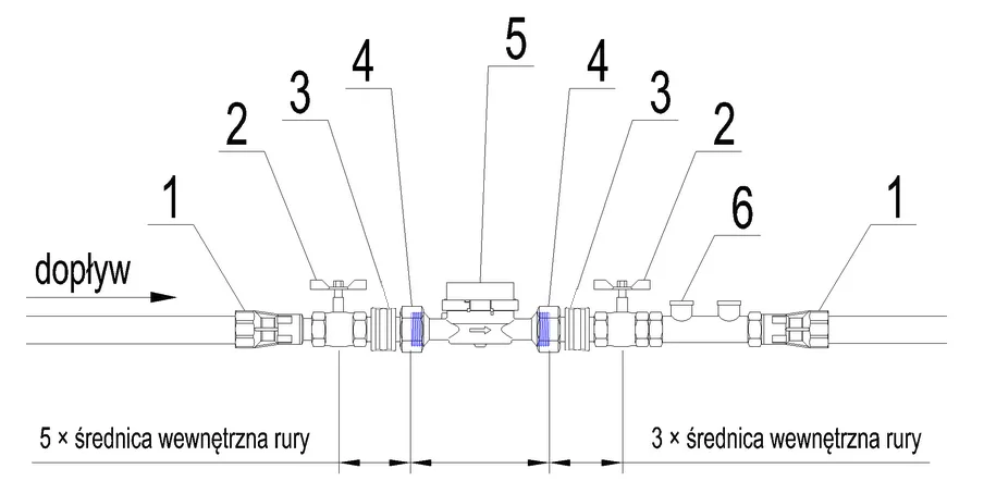 Schemat i wytyczne do montażu wodomierza DN 15 i DN 20